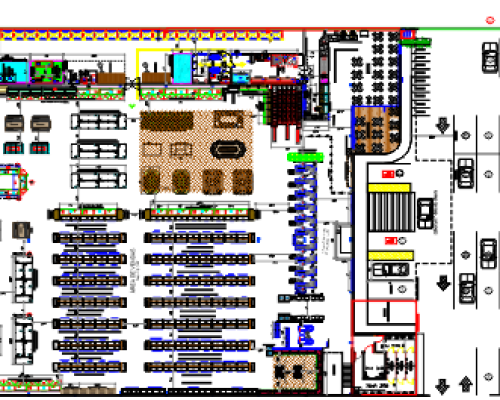 Projetamos também toda área da retaguarda, escritórios, banheiros, depósito, estacionamento.